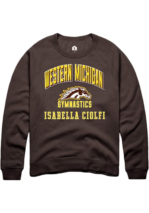 Support your Western Michigan Broncos and favorite Isabella Ciolfi in this Western Michigan Broncos Mens Brown NIL Arch Logo Player Crew. This Crew Sweatshirt features a NIL graphic, and is sure to stand out in the stadium. Perfect to wear on game day or any day!