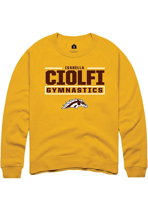 Support your Western Michigan Broncos and favorite Isabella Ciolfi in this Western Michigan Broncos Mens Gold NIL Stacked Box Player Crew. This Crew Sweatshirt features a NIL graphic, and is sure to stand out in the stadium. Perfect to wear on game day or any day!