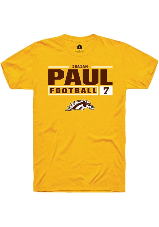 Display your team spirit with this remarkable Western Michigan Broncos Rally Gold Football NIL Stacked Box Short Sleeve T Shirt! The WMU Broncos Short Sleeve Tee showcases a custom graphic with player's name and number that truly sets it apart. Stand out from the crowd and proudly declare your allegiance to the Broncos with this exceptional Gold WMU Broncos T Shirt. Go Broncos!