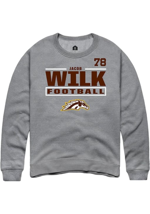 Support your Western Michigan Broncos and favorite Jacob Wilk in this Western Michigan Broncos Mens Grey Football NIL Stacked Box Player Crew. This Crew Sweatshirt features a NIL graphic, and is sure to stand out in the stadium. Perfect to wear on game day or any day!