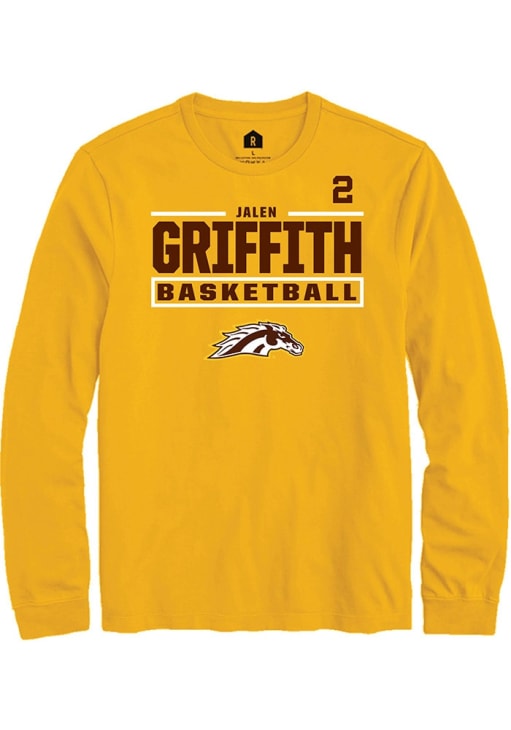 Embrace the spirit of your favorite player in this Western Michigan Broncos Gold NIL Stacked Box Jalen Griffith Long Sleeve Player Tee! This Player T Shirt features a NIL graphic, so everyone will know you cheer for WMU Broncos, Jalen Griffith! This is the perfect Broncos Player Tee for game days. Go Broncos!