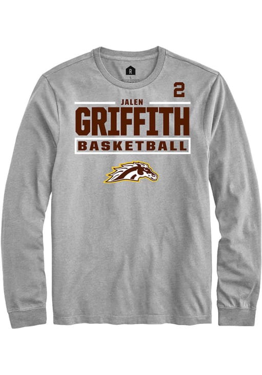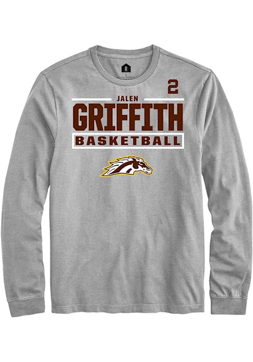 Embrace the spirit of your favorite player in this Western Michigan Broncos Grey NIL Stacked Box Jalen Griffith Long Sleeve Player Tee! This Player T Shirt features a NIL graphic, so everyone will know you cheer for WMU Broncos, Jalen Griffith! This is the perfect Broncos Player Tee for game days. Go Broncos!
