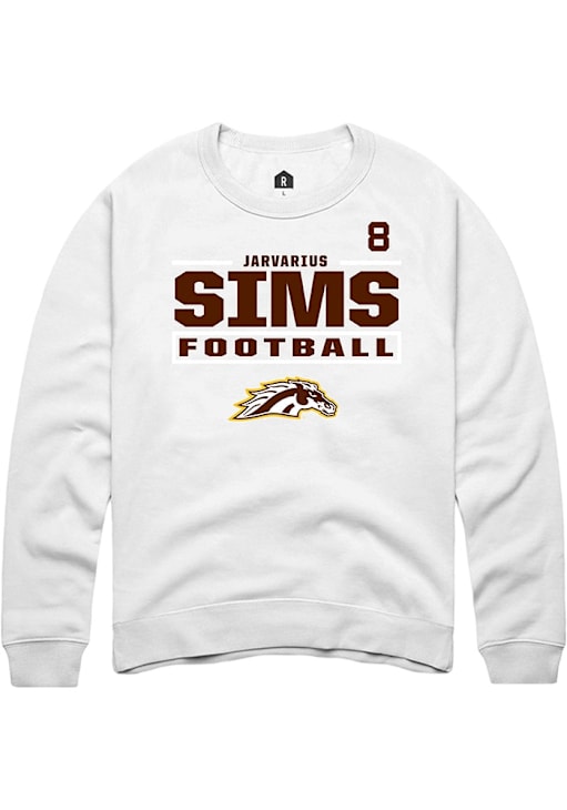 Support your Western Michigan Broncos and favorite Jarvarius Sims in this Western Michigan Broncos Mens White Football NIL Stacked Box Player Crew. This Crew Sweatshirt features a NIL graphic, and is sure to stand out in the stadium. Perfect to wear on game day or any day!