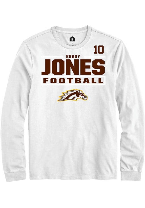 Embrace the spirit of your favorite player in this Western Michigan Broncos White Football NIL Stacked Box Brady Jones Long Sleeve Player Tee! This Player T Shirt features a NIL graphic, so everyone will know you cheer for WMU Broncos, Brady Jones! This is the perfect Broncos Player Tee for game days. Go Broncos!