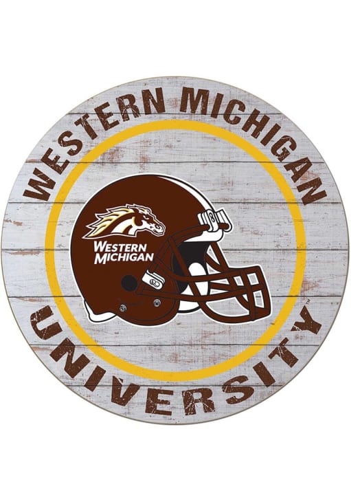 This Western Michigan Broncos Weathered Helmet Circle Sign is great for decorating your home Broncos team spirit. Take your team spirit to the next level with this Sign, which features a team football helmet on weathered background. Go Broncos!