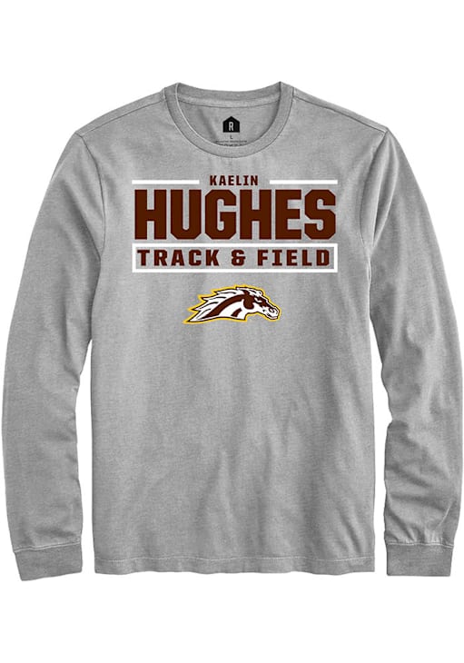 Embrace the spirit of your favorite player in this Western Michigan Broncos Grey NIL Stacked Box Kaelin Hughes Long Sleeve Player Tee! This Player T Shirt features a NIL graphic, so everyone will know you cheer for WMU Broncos, Kaelin Hughes! This is the perfect Broncos Player Tee for game days. Go Broncos!