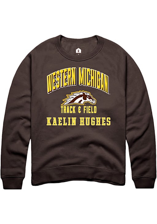 Support your Western Michigan Broncos and favorite Kaelin Hughes in this Western Michigan Broncos Mens Brown NIL Arch Logo Player Crew. This Crew Sweatshirt features a NIL graphic, and is sure to stand out in the stadium. Perfect to wear on game day or any day!