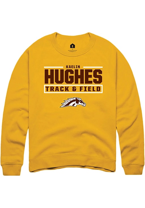 Support your Western Michigan Broncos and favorite Kaelin Hughes in this Western Michigan Broncos Mens Gold NIL Stacked Box Player Crew. This Crew Sweatshirt features a NIL graphic, and is sure to stand out in the stadium. Perfect to wear on game day or any day!
