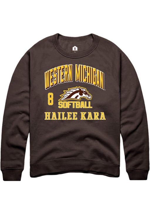 Hailee Kara Rally Mens Brown Western Michigan Broncos NIL Arch Logo Crew Sweatshirt