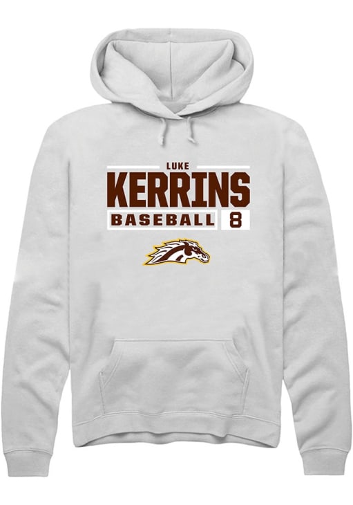 Luke Kerrins Rally Mens White Western Michigan Broncos NIL Stacked Box Hooded Sweatshirt