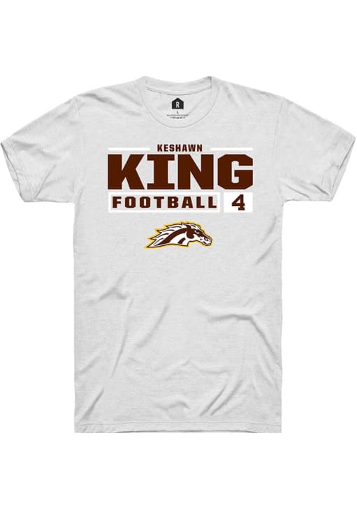 Display your team spirit with this remarkable Western Michigan Broncos White Football NIL Stacked Box Short Sleeve T Shirt! The WMU Broncos Short Sleeve Tee showcases a custom graphic with player's name and number that truly sets it apart. Stand out from the crowd and proudly declare your allegiance to the Broncos with this exceptional White WMU Broncos T Shirt. Go Broncos!