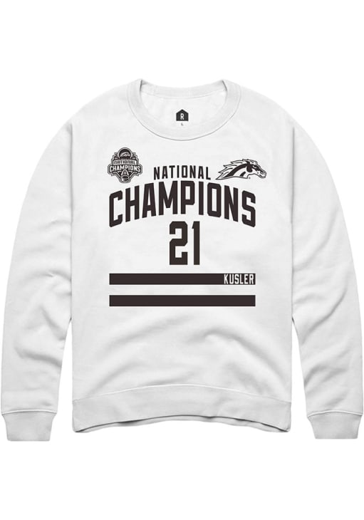 Support your Western Michigan Broncos and favorite Ryan Kusler in this Western Michigan Broncos Mens White NIL 2025 National Champions Shirzee Player Crew. This Crew Sweatshirt features a NIL graphic, and is sure to stand out in the stadium. Perfect to wear on game day or any day!