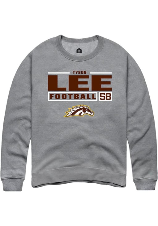Tyson Lee Rally Mens Grey Western Michigan Broncos Football NIL Stacked Box Crew Sweatshirt