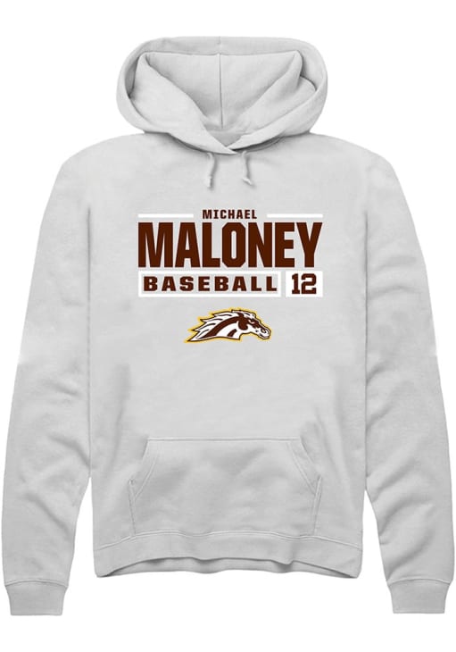 Michael Maloney Rally Mens White Western Michigan Broncos NIL Stacked Box Hooded Sweatshirt
