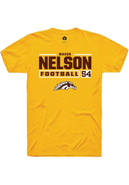 Mason Nelson Gold Western Michigan Broncos Football NIL Stacked Box Short Sleeve T Shirt