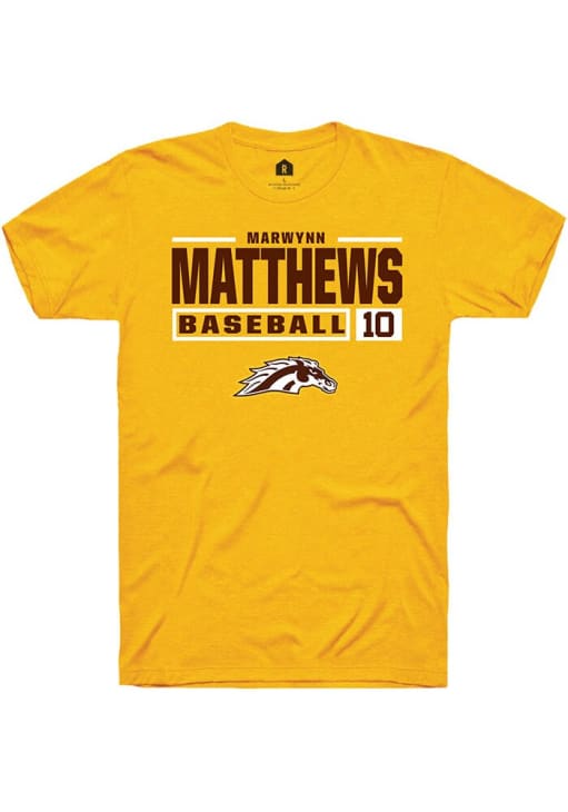 Marwynn Matthews Gold Western Michigan Broncos NIL Stacked Box Short Sleeve T Shirt