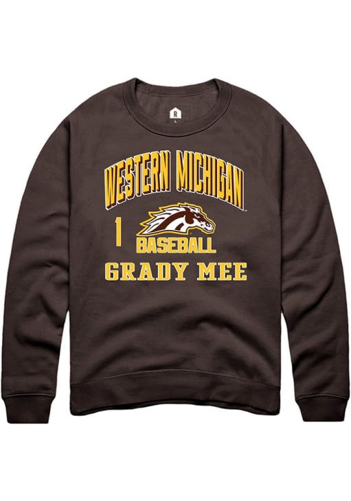 Grady Mee Rally Mens Brown Western Michigan Broncos NIL Arch Logo Crew Sweatshirt