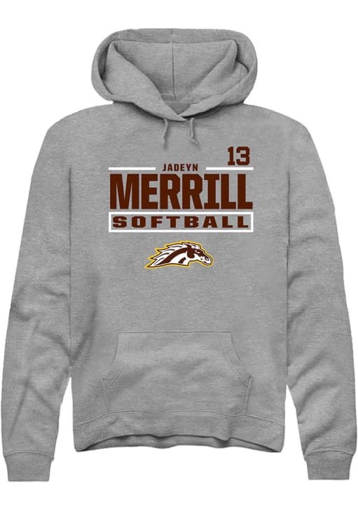 Jadeyn Merrill Rally Mens Grey Western Michigan Broncos NIL Stacked Box Hooded Sweatshirt