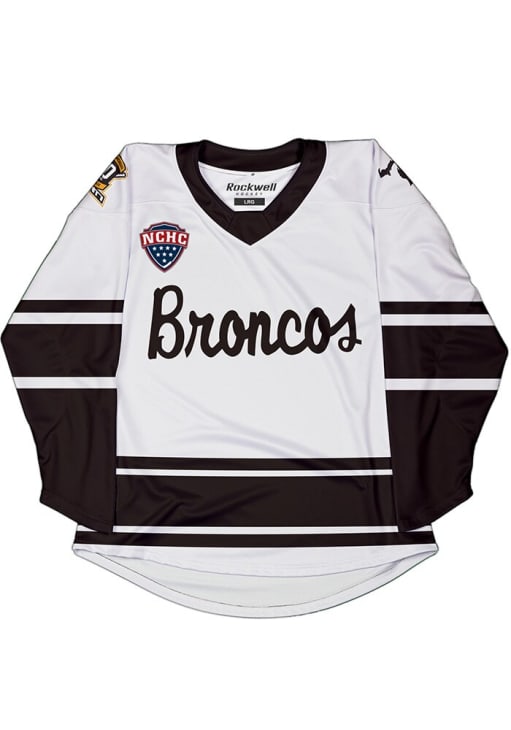 There will be no mistaking your WMU Broncos loyalty when you wear this Western Michigan Broncos Mens White Replica Hockey Script Team Name 50th Anniversary Jersey! Look amazing on gameday in this Western Michigan Broncos Hockey Jersey, which features a embroidered tackle twill decorations.