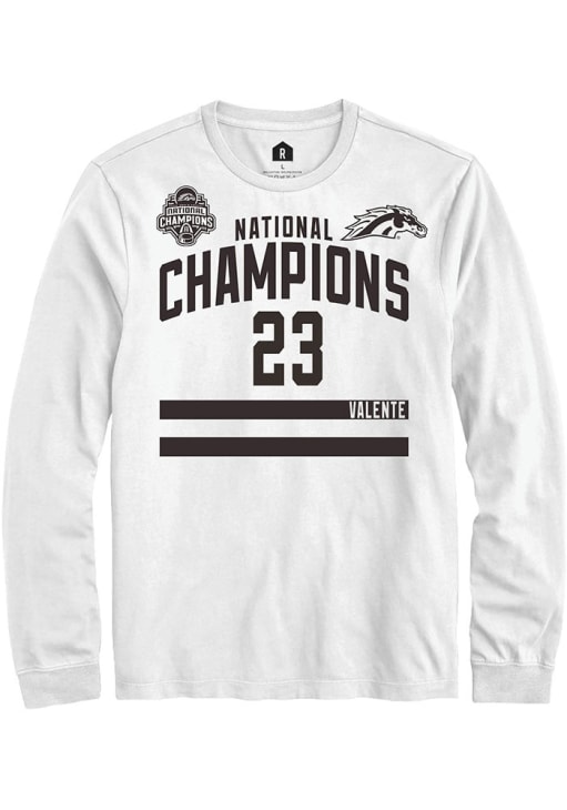 Embrace the spirit of your favorite player in this Western Michigan Broncos White NIL 2025 National Champions Shirzee Liam Valente Long Sleeve Player Tee! This Player T Shirt features a NIL graphic, so everyone will know you cheer for WMU Broncos, Liam Valente! This is the perfect Broncos Player Tee for game days. Go Broncos!