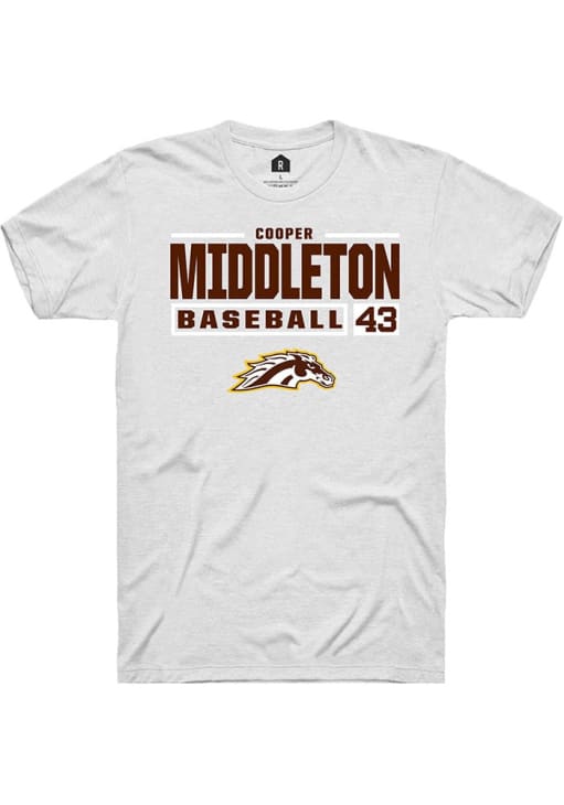 Cooper Middleton White Western Michigan Broncos NIL Stacked Box Short Sleeve T Shirt