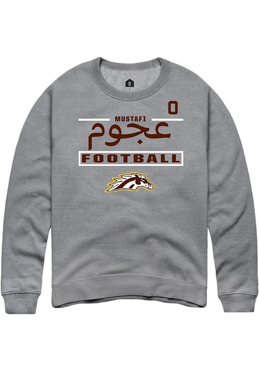 Support your Western Michigan Broncos and favorite Mustafi Al-Gawari in this Western Michigan Broncos Mens Grey Football NIL Stacked Box Player Crew. This Crew Sweatshirt features a NIL graphic, and is sure to stand out in the stadium. Perfect to wear on game day or any day!
