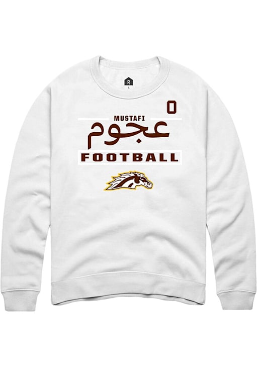 Support your Western Michigan Broncos and favorite Mustafi Al-Gawari in this Western Michigan Broncos Mens White Football NIL Stacked Box Player Crew. This Crew Sweatshirt features a NIL graphic, and is sure to stand out in the stadium. Perfect to wear on game day or any day!