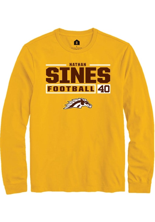 Nathan Sines Rally Mens Gold Western Michigan Broncos Football NIL Stacked Box Tee