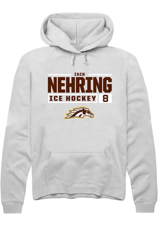 Zach Nehring Rally Mens White Western Michigan Broncos NIL Stacked Box Hooded Sweatshirt
