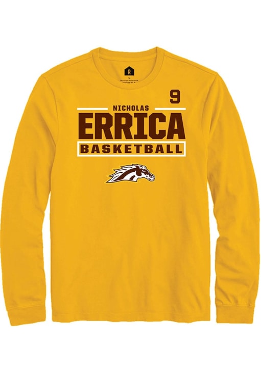 Embrace the spirit of your favorite player in this Western Michigan Broncos Gold NIL Stacked Box Nicholas Errica Long Sleeve Player Tee! This Player T Shirt features a NIL graphic, so everyone will know you cheer for WMU Broncos, Nicholas Errica! This is the perfect Broncos Player Tee for game days. Go Broncos!
