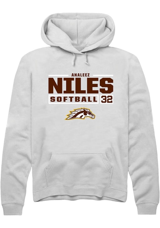Analeez Niles Rally Mens White Western Michigan Broncos NIL Stacked Box Hooded Sweatshirt