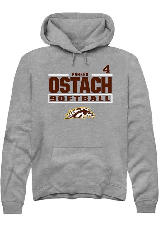 Parker Ostach Rally Mens Grey Western Michigan Broncos NIL Stacked Box Hooded Sweatshirt