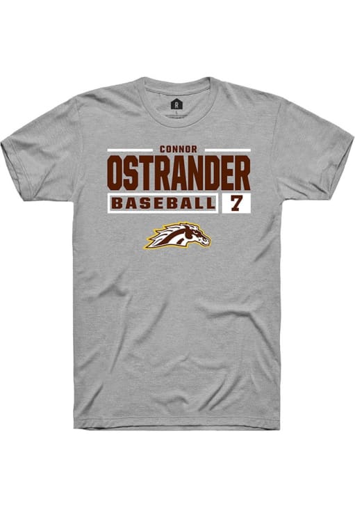 Connor Ostrander Grey Western Michigan Broncos NIL Stacked Box Short Sleeve T Shirt