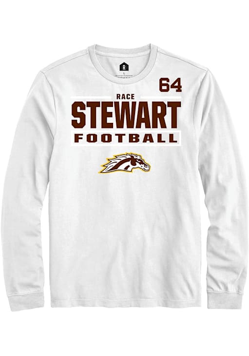Embrace the spirit of your favorite player in this Western Michigan Broncos White Football NIL Stacked Box Race Stewart Long Sleeve Player Tee! This Player T Shirt features a NIL graphic, so everyone will know you cheer for WMU Broncos, Race Stewart! This is the perfect Broncos Player Tee for game days. Go Broncos!