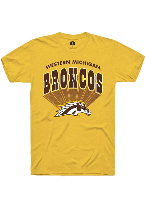 Display your team spirit with this remarkable Western Michigan Broncos Rally Gold Official Gameday Short Sleeve T Shirt! The WMU Broncos Short Sleeve Tee showcases a screen print of team graphic on front chest that truly sets it apart. Stand out from the crowd and proudly declare your allegiance to the Broncos with this exceptional Gold WMU Broncos T Shirt. Go Broncos!