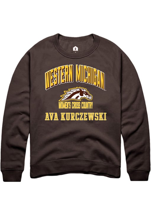 Ava Kurczewski Rally Mens Brown Western Michigan Broncos NIL Arch Logo Crew Sweatshirt