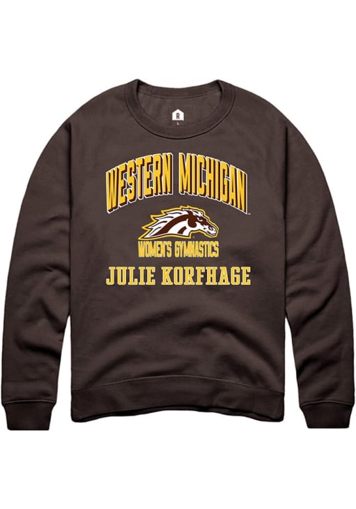Julie Korfhage Rally Mens Brown Western Michigan Broncos NIL Arch Logo Crew Sweatshirt