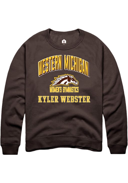 Kyler Webster Rally Mens Brown Western Michigan Broncos NIL Arch Logo Crew Sweatshirt