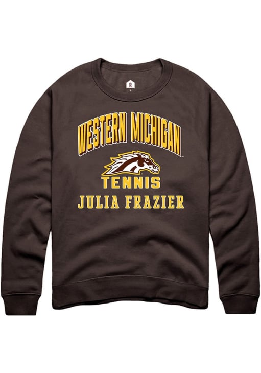 Julia Frazier Rally Mens Brown Western Michigan Broncos NIL Arch Logo Crew Sweatshirt