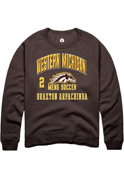 Braxton Arpachinda Rally Mens Brown Western Michigan Broncos NIL Arch Logo Crew Sweatshirt