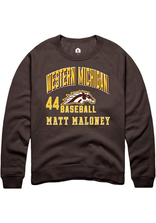 Matt Maloney Rally Mens Brown Western Michigan Broncos NIL Arch Logo Crew Sweatshirt