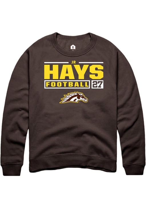 Gear up for the ultimate game day experience with this remarkable Western Michigan BroncosMens Brown Football NIL Stacked Box Crew Sweatshirt! Designed with the true fan in mind, this Broncos Long Sleeve Crew Sweatshirt features a custom graphic with player's name and number. Stay warm and comfortable with this Mens WMU Broncos Broncos Crew Sweatshirt.