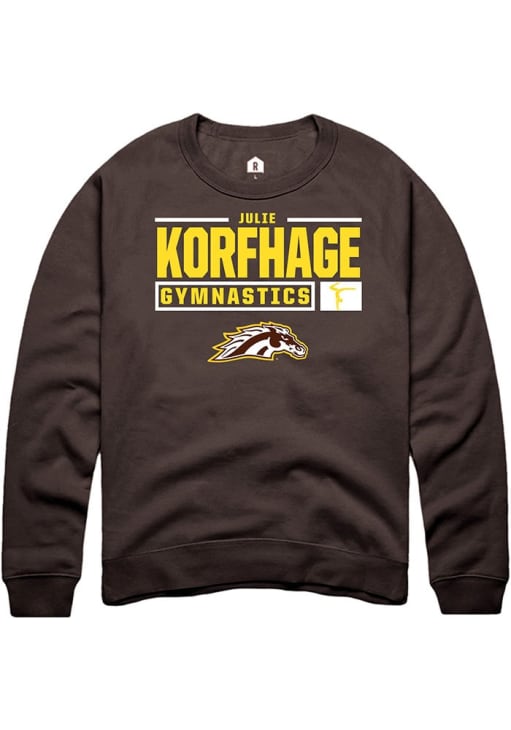 Julie Korfhage Rally Mens Brown Western Michigan Broncos NIL Stacked Box Crew Sweatshirt
