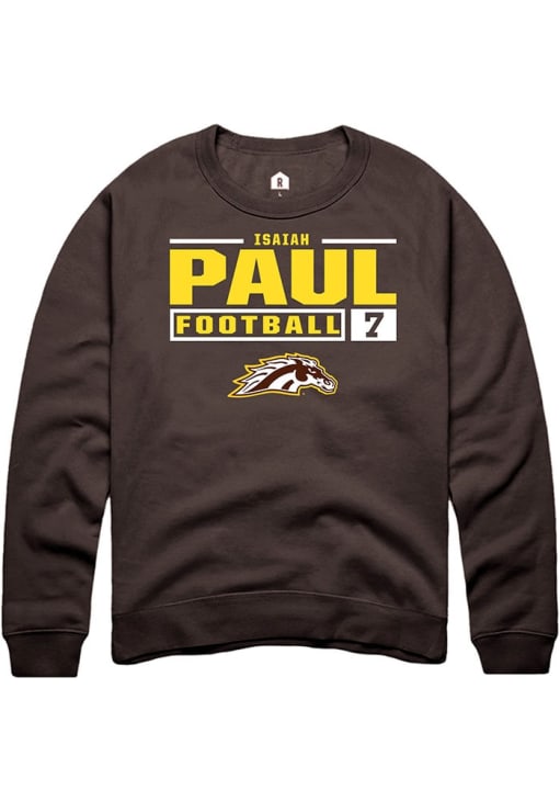 Isaiah Paul Rally Mens Brown Western Michigan Broncos Football NIL Stacked Box Crew Sweatshirt