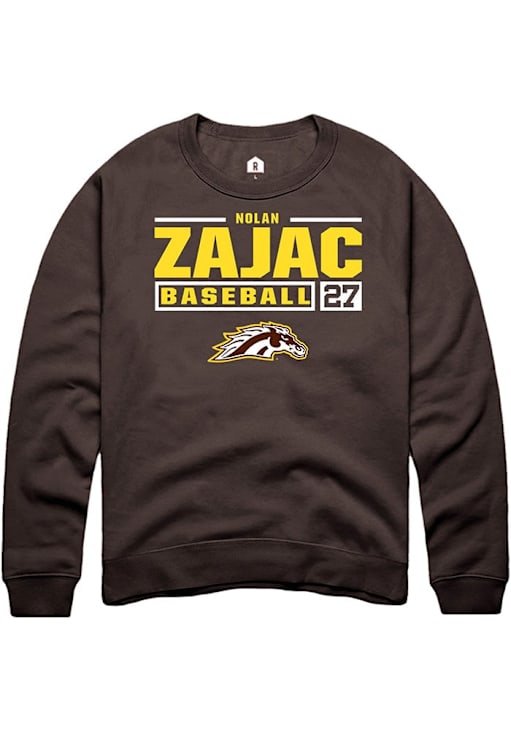 Nolan Zajac Rally Mens Brown Western Michigan Broncos NIL Stacked Box Crew Sweatshirt