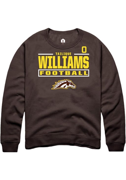 Gear up for the ultimate game day experience with this remarkable Western Michigan BroncosMens Brown Football NIL Stacked Box Crew Sweatshirt! Designed with the true fan in mind, this Broncos Long Sleeve Crew Sweatshirt features a custom graphic with player's name and number. Stay warm and comfortable with this Mens WMU Broncos Broncos Crew Sweatshirt.