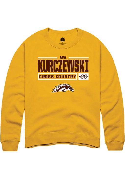 Ava Kurczewski Rally Mens Gold Western Michigan Broncos NIL Stacked Box Crew Sweatshirt