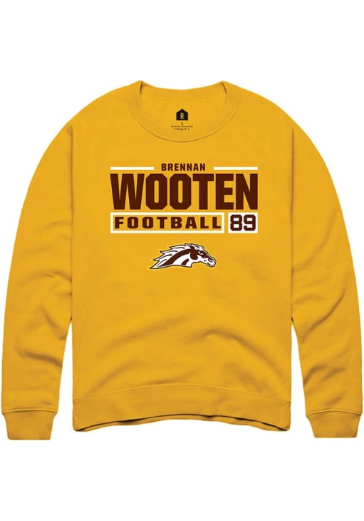 Brennan Wooten Rally Mens Gold Western Michigan Broncos Football NIL Stacked Box Crew Sweatshirt