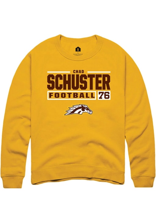 Chad Schuster Rally Mens Gold Western Michigan Broncos Football NIL Stacked Box Crew Sweatshirt