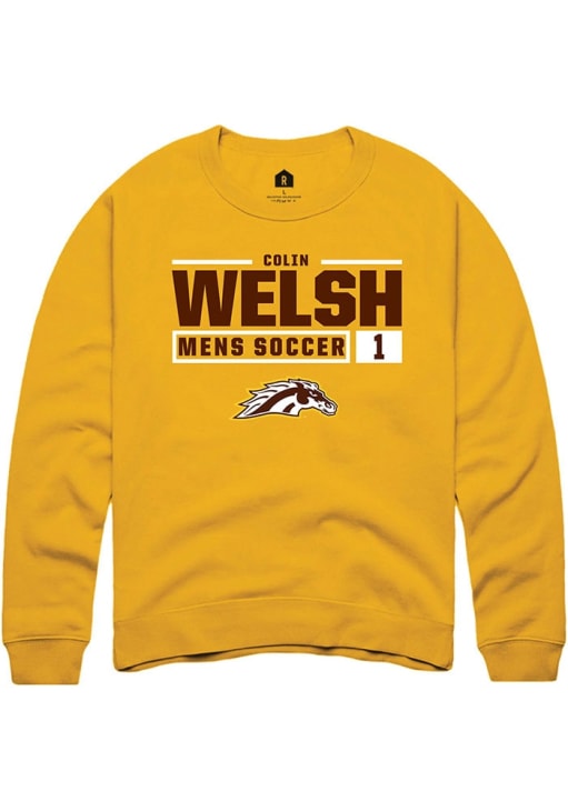 Colin Welsh Rally Mens Gold Western Michigan Broncos NIL Stacked Box Crew Sweatshirt